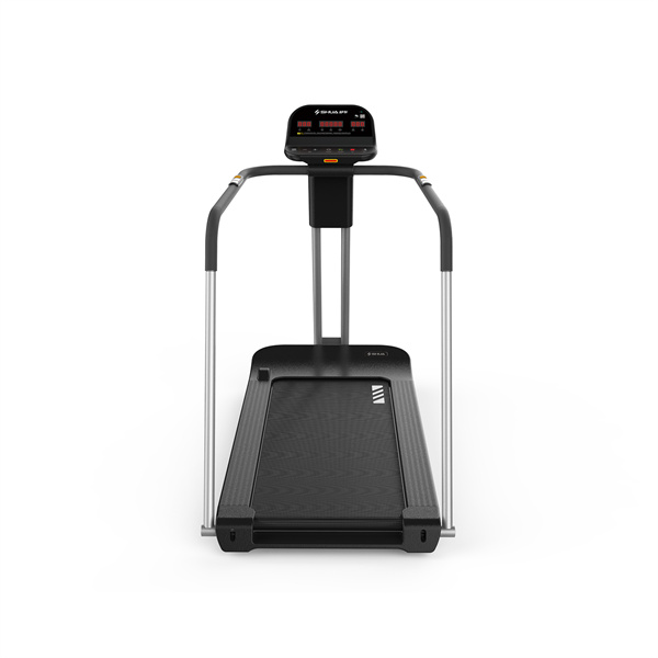 舒华V9尊享版跑步机SH-T899设有辅助上下机踏板的驱动踏板,控制速度在-5至10km/h内可调,坡度也可在-3至15%内可调,跑台尺寸是580×1570mm,持续马力是AC 3.0HP。